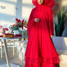 عباية بقماش أحمر. مصممة بطبقات الأورجانزا من الأسفل ، قماش شيفون مزدوج ،مع طرحة    .