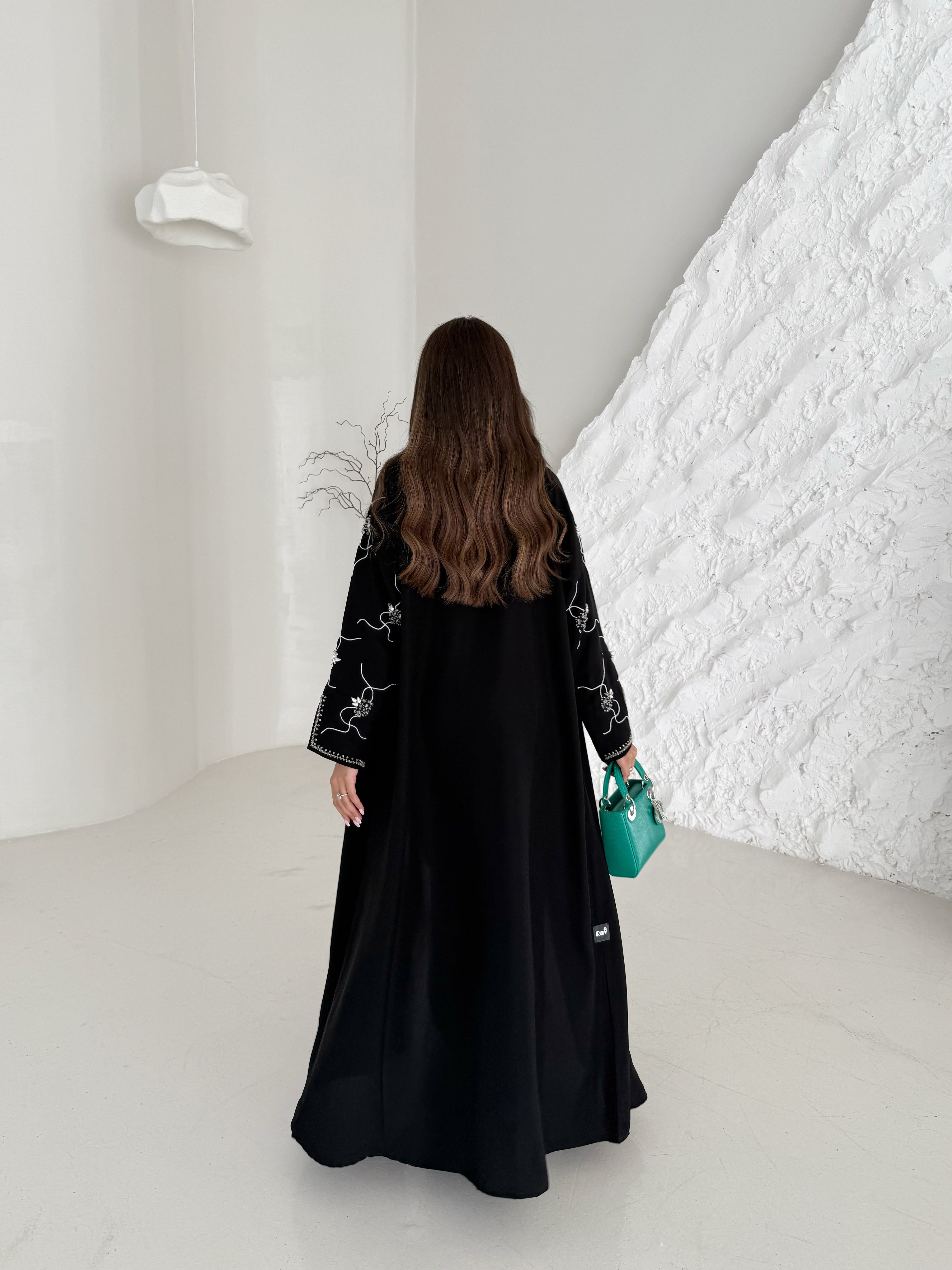 - Start measuring from the top of your shoulder, where the seam of the Abaya's shoulder would be, and run the measuring tape along the outside of your arm.