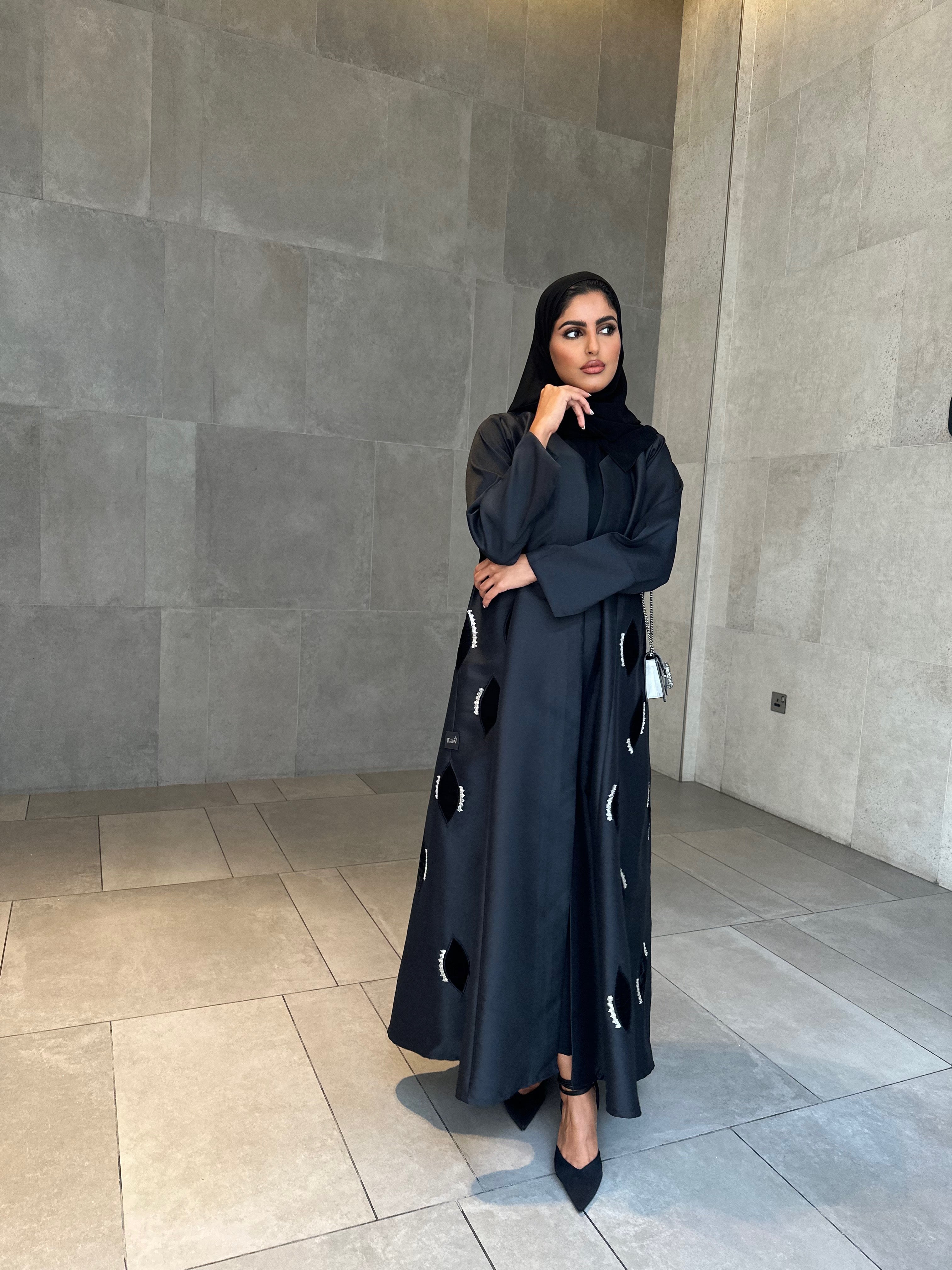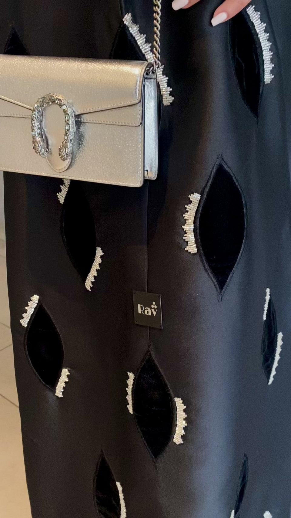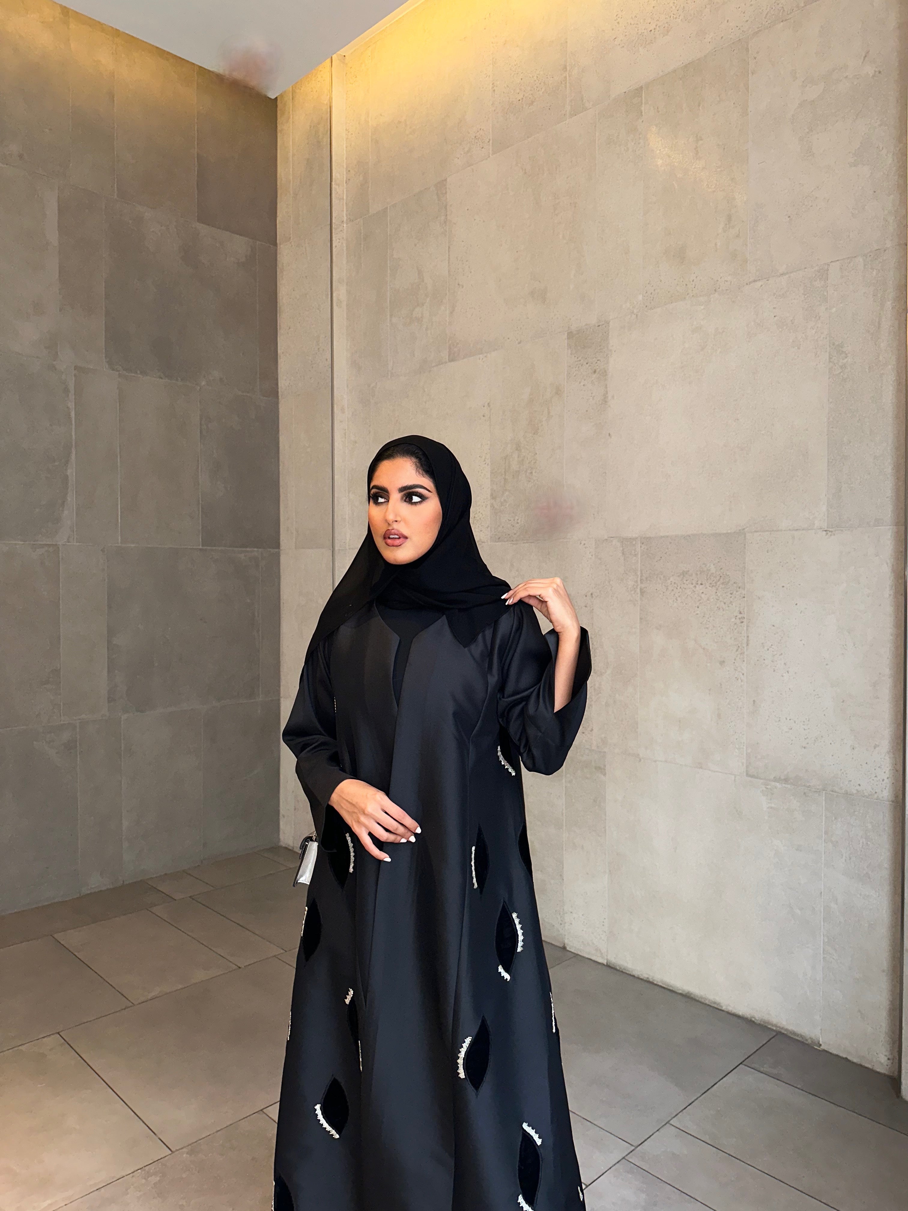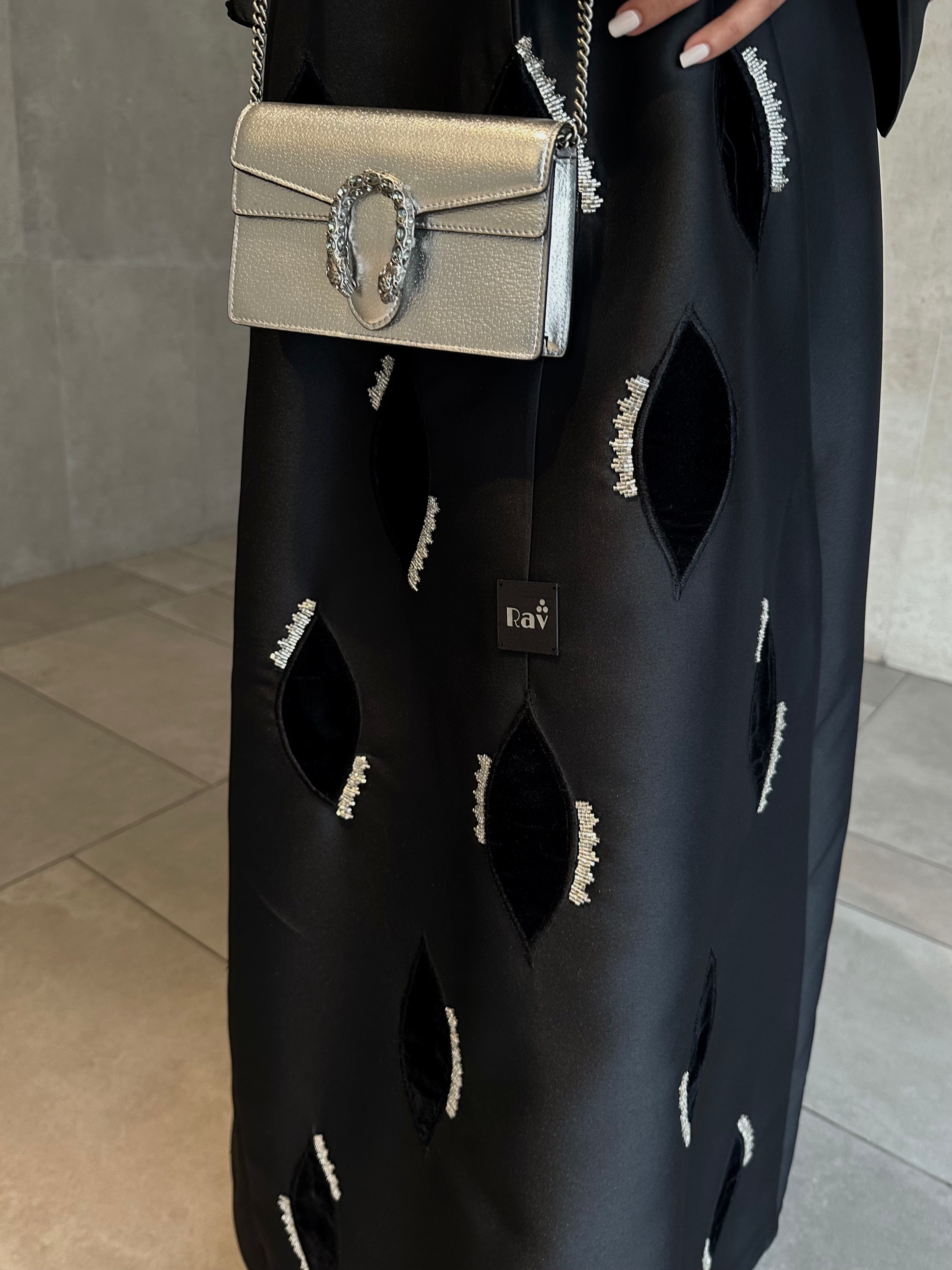 Black klosh abaya taffeta fabric embroidered with crystal and matte velvet material , shillah included