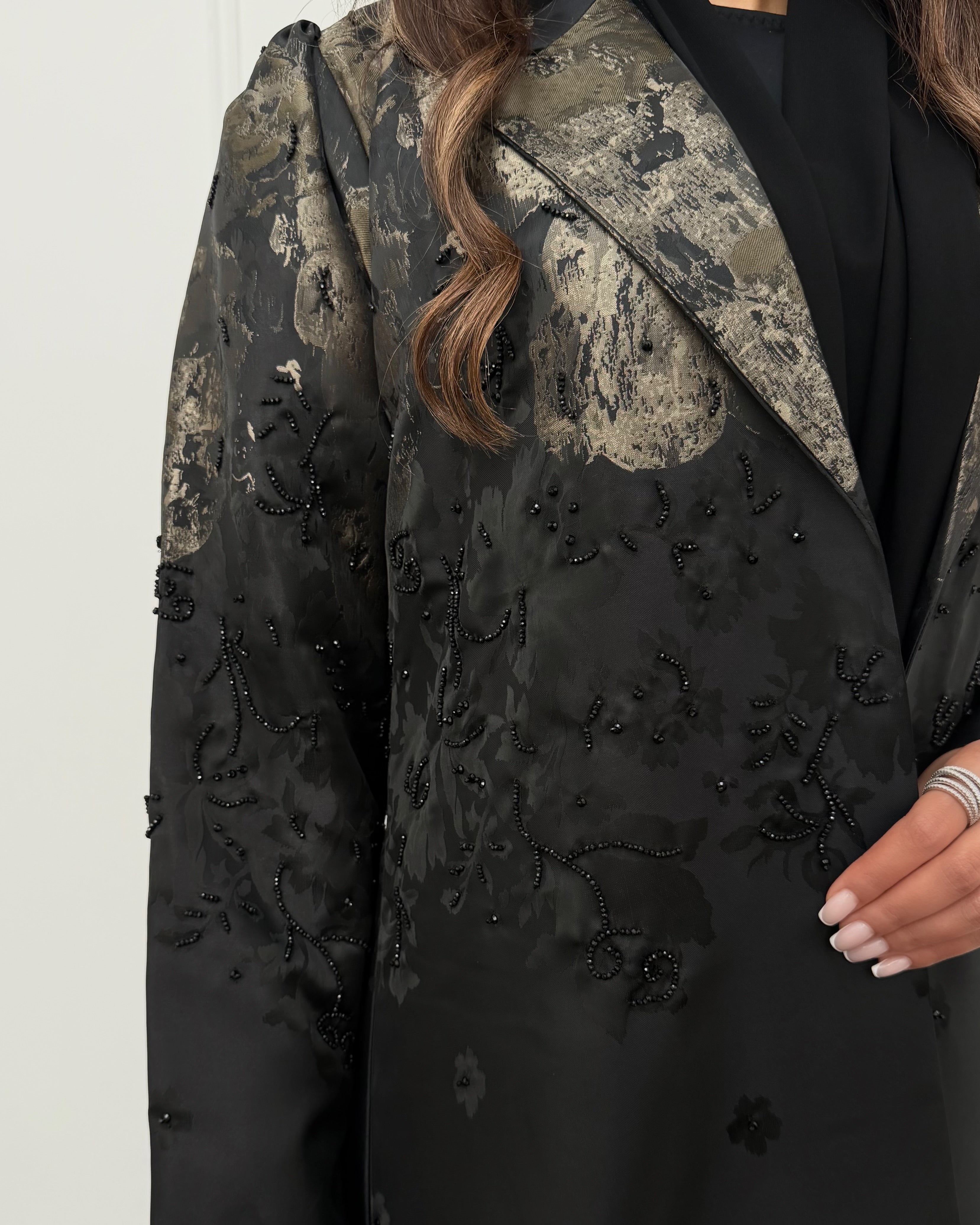 - Start measuring from the top of your shoulder, where the seam of the Abaya's shoulder would be, and run the measuring tape along the outside of your arm.
